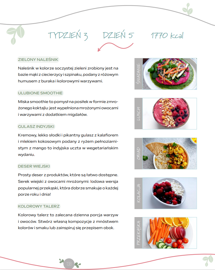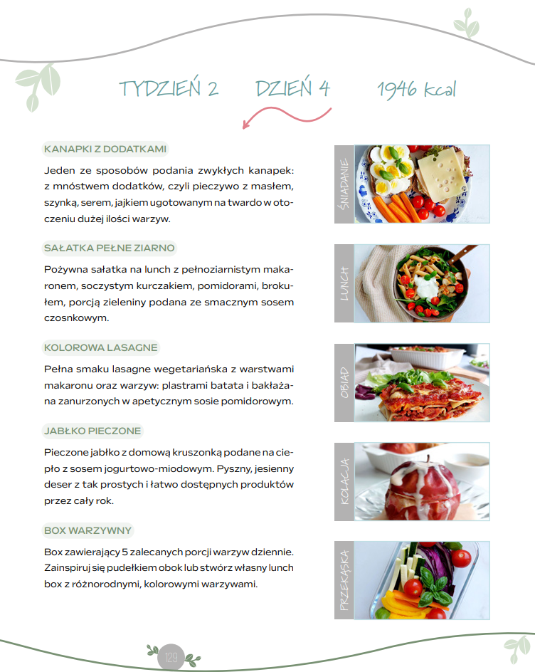 Zaczęłam korzystać na co dzień z trzytygodniowego jadłospisu z propozycjami posiłków i jestem zachwycona! 200 stron praktycznej wiedzy oraz przepisów w pięknej, kolorowej oprawie! Polecam.