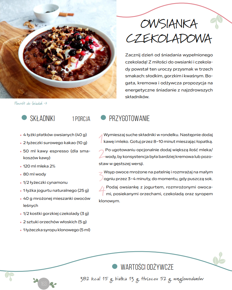 - Ponad 60 różnorodnych przepisów: W tym 20 śniadań, 20 obiadów, 20 kolacji i 32 przekąski – smaczne, proste, idealne na zimno i ciepło.